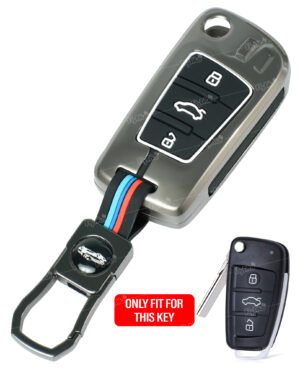 Enhance your key’s durability and elevate your Audi’s style with this premium metal silicone key cover. Designed specifically for 3-button Audi flip smart keys, this case offers dual-material protection and glow-in-the-dark visibility for night-time convenience.
