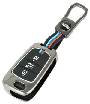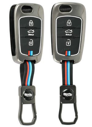Metal Silicone Key Cover for Hyundai i10 & i20 (Old Models) – 3 Button Flip Smart Key