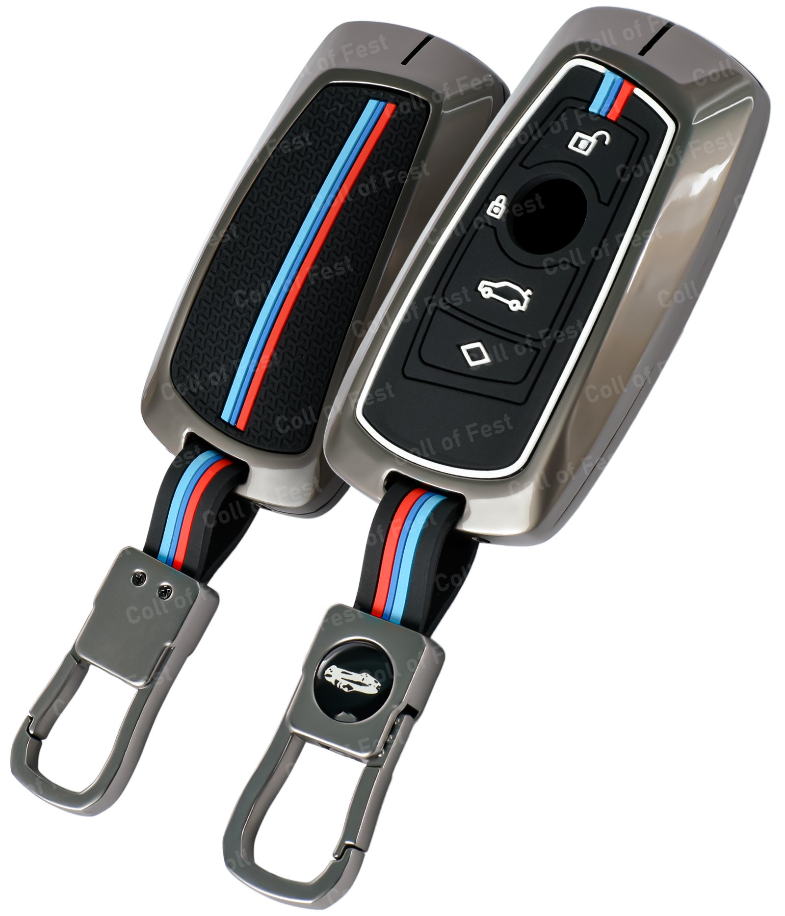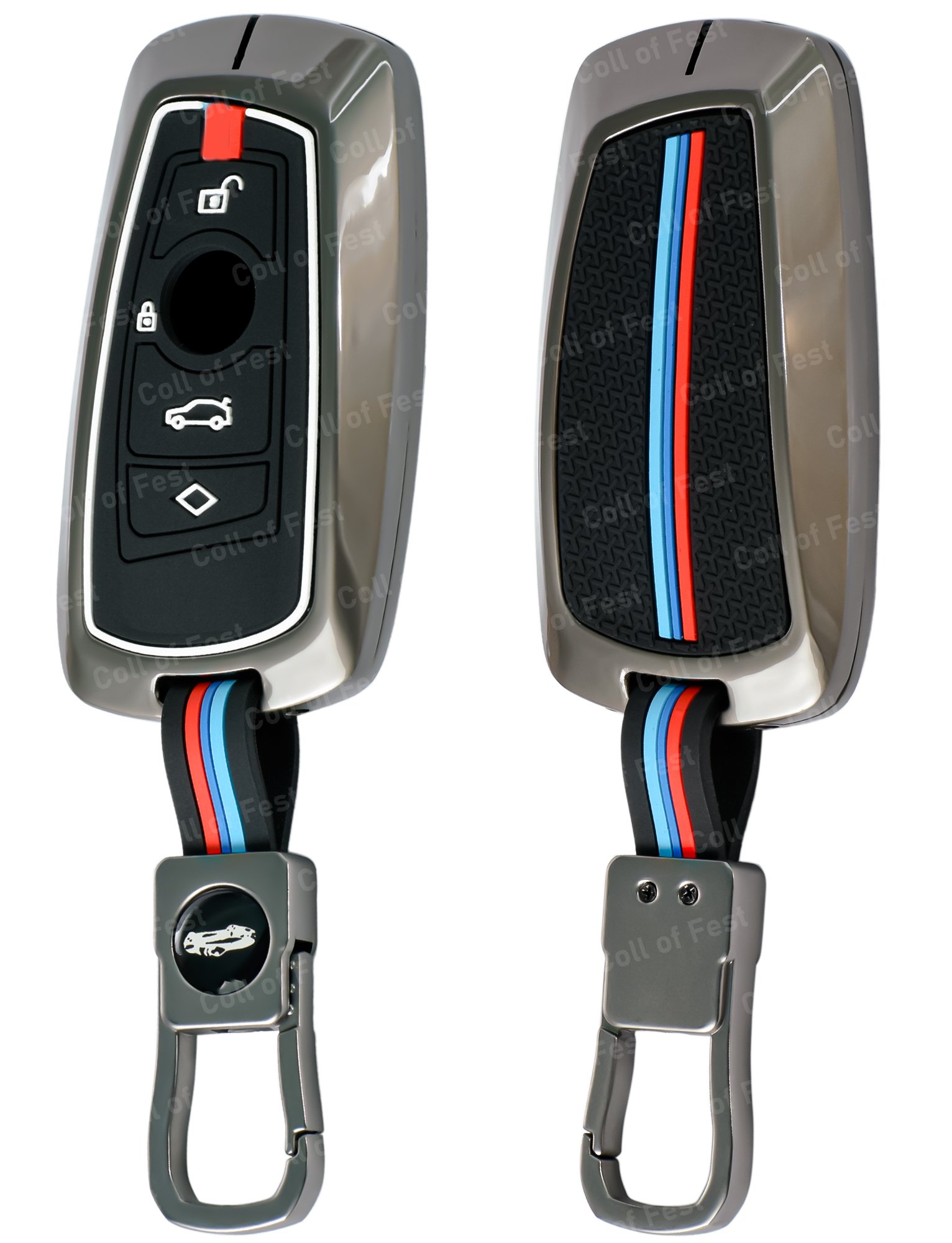 Coll of Fest Metal Silicon Key Cover Compatible with BMW X-Series | 3-Series | 5-Series | 7-Series 4 Button Smart Key Special Feature Visible in low-light Condition FlyPico Metal Silicon Key Cove...