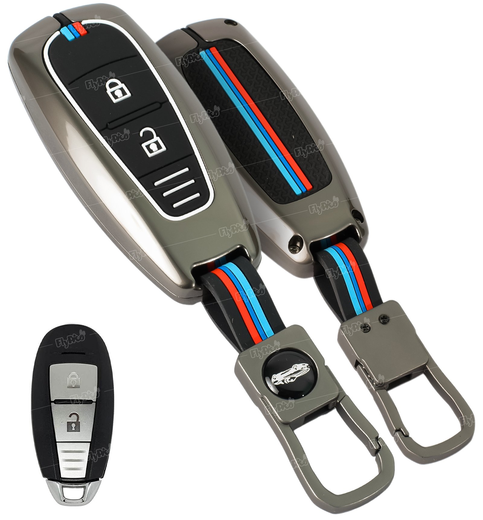 Metal Silicone Key Cover for Maruti Suzuki – 2 Button Smart Key (Ignis, Swift, Baleno, Ciaz, S-Cross, Vitara Brezza)